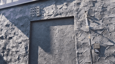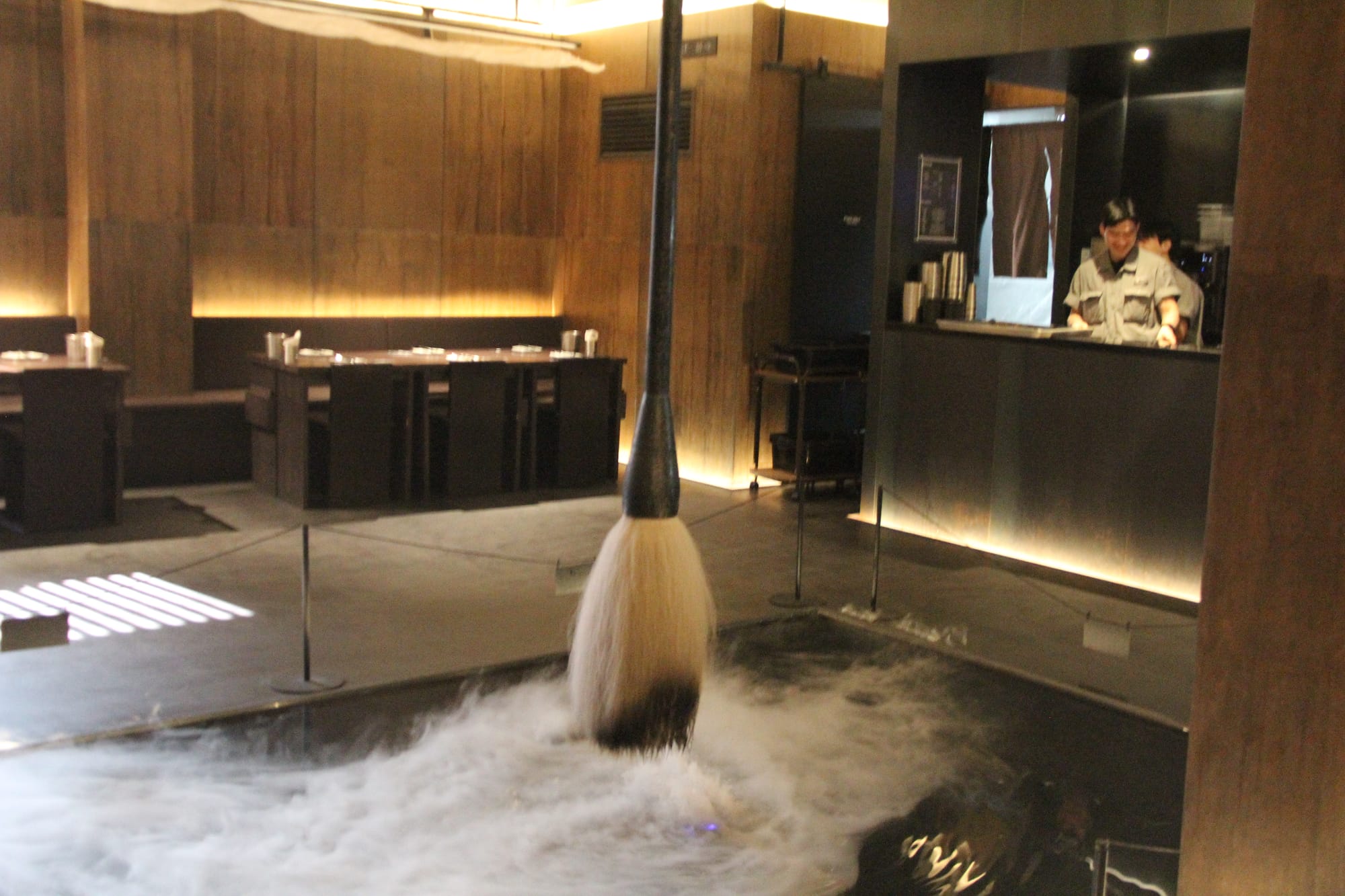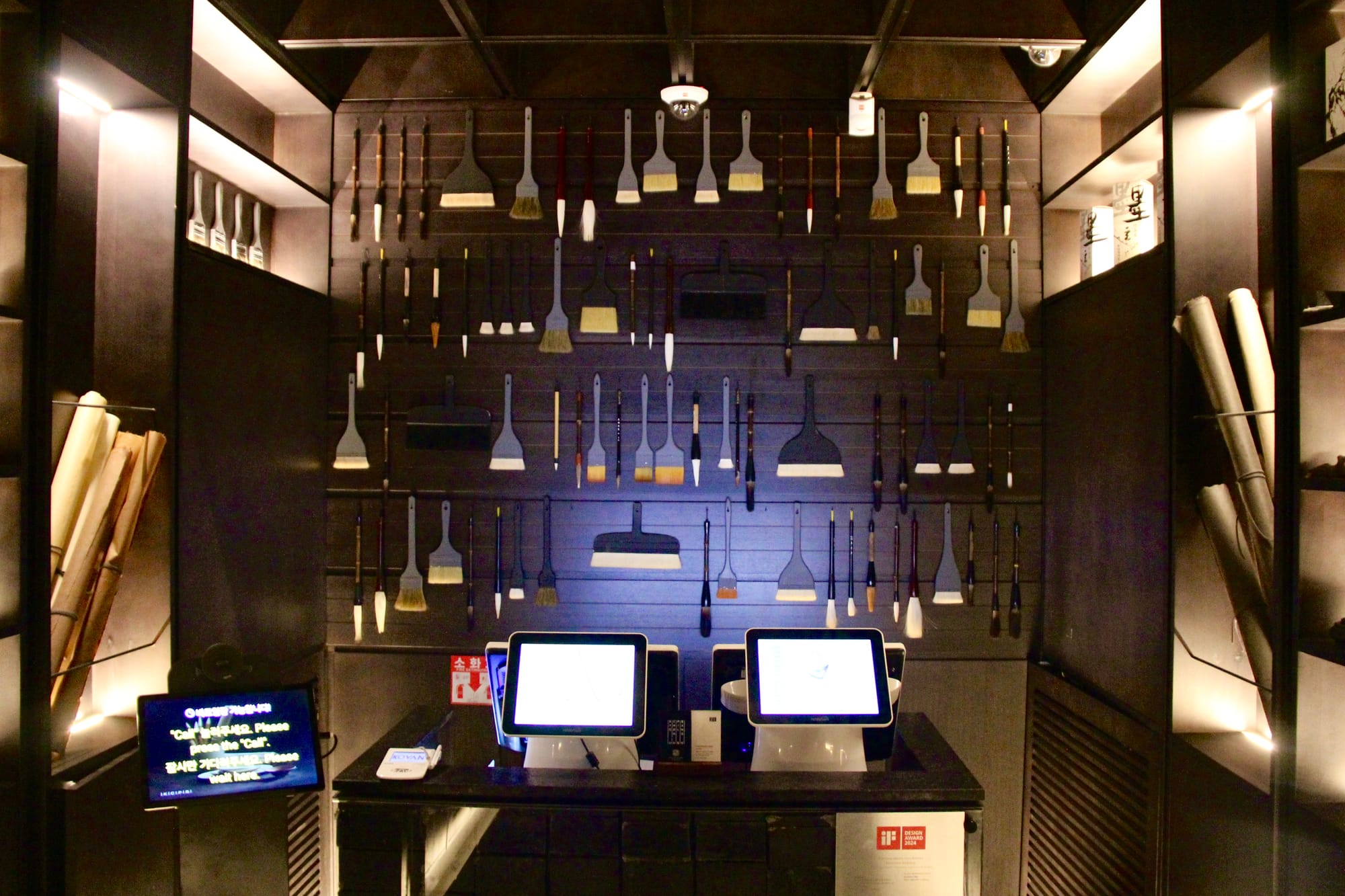 Inside, you’ll notice a large brush installation — dramatic, intentional.
